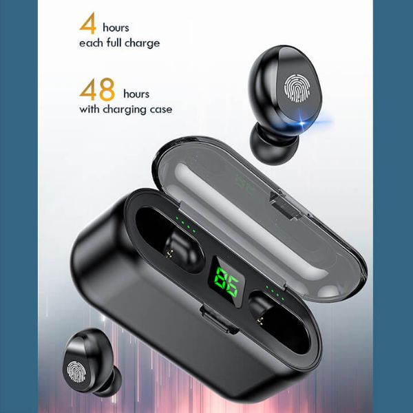 The device comes with a convenient charging case that keeps the battery charged for up to 48 hours. This offers an extremely practical solution as you can charge your headphones at any time, ensuring that they are always ready for use. In just 4 hours, the wireless headphones can be charged to 100%.