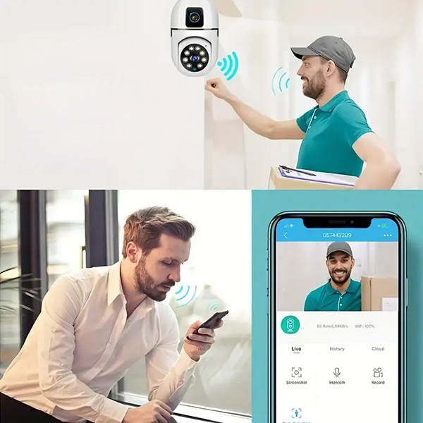 С високоговорителя на интеркома на BULBCAM можете да говорите директно през мобилния телефон с всеки, който е пред вратата ви. Можете също така да давате инструкции на доставчиците или дори да упътвате гостите, ако сте заети или отсъствате, което улеснява управлението на посетителите отвсякъде.