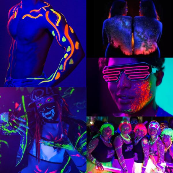 Гримът на NEONGLAM предлага богата пигментация и лесен процес на нанасяне. Просто навлажнете четка или гъба, потопете ги в боята и без усилие постигнете завладяващ UV вид.