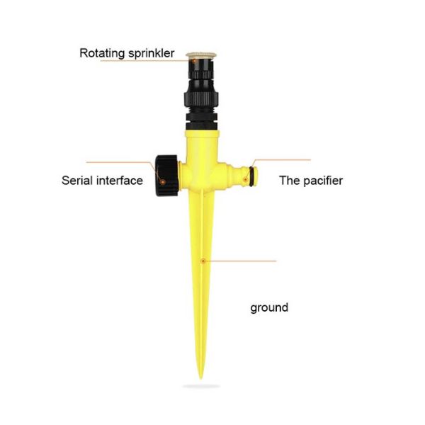 Този разпръсквач е проектиран за лесен монтаж и практична употреба, просто прикрепете маркуч с подходящ размер към шипа отстрани на разпръсквача, завъртете крана и водата ще потече мигновено. Неговата въртяща се конструкция не само осигурява равномерно поливане на градината, но и осигурява забавен начин за игра на децата и разхлаждане през горещите дни.