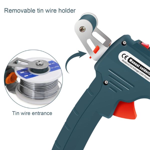 Може да се управлява с една ръка, така че не е необходимо отново да насочвате ръцете си към калайдисаната тел и калаения пистолет и не е необходимо да се притеснявате, че ще си опарите ръцете.