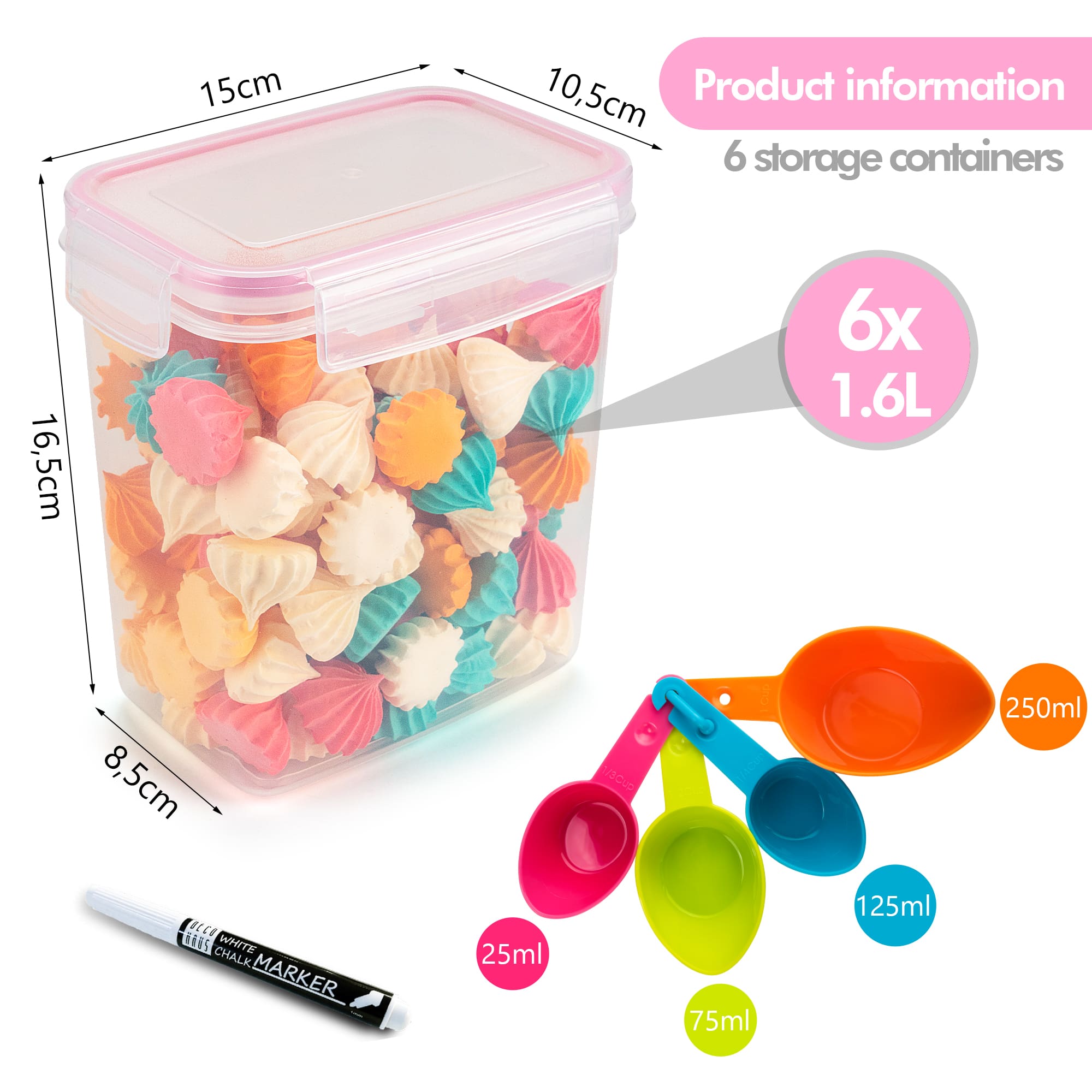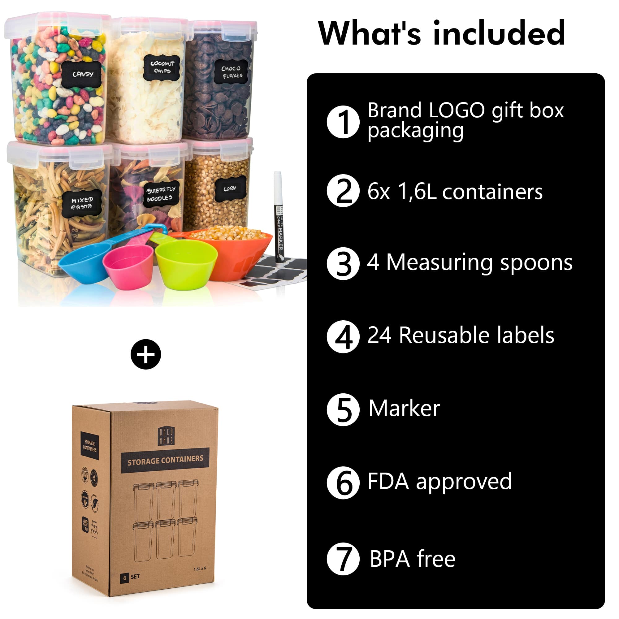 ✅ МНОГО ПРОСТРАНСТВО – Комплектът се предлага с 6 контейнера, всеки с капацитет от 1,6 литра, така че ще имате достатъчно място за подреждане на вашите хранителни стоки!