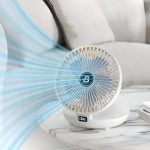 Този акумулаторен вентилатор е снабден с батерия с голям капацитет 5V/2A, която се нуждае само от 3 – 4 часа за пълно зареждане и може да работи в продължение на 4 – 12 часа в зависимост от настройката на скоростта на вятъра.