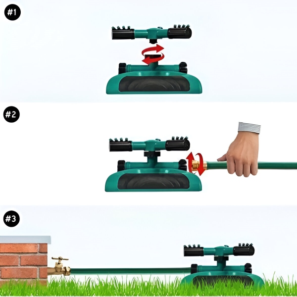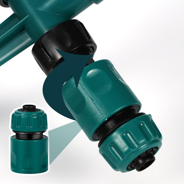 Изработена от висококачествена ABS пластмаса с непропусклив дизайн, ROTOSPRITZ гарантира стабилна работа и дълготрайна издръжливост. Въртящият се накрайник с три рамена може да се регулира за различни ъгли на пръскане, като отговаря на различни нужди от поливане и осигурява гъвкавост в рутинните грижи за градината.