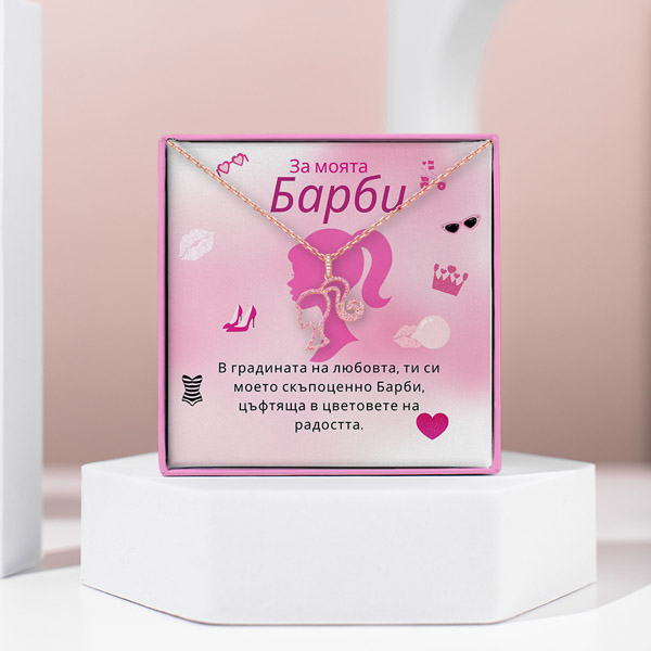 Дизайн: Висулката е с деликатен и сложно изработен силует на Барби, улавящ същността на грацията и женствеността. Съвременният ѝ дизайн е едновременно модерен и класически. 👗💁♀️