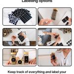Получавате не само 12 страхотни бурканчета за подправки, но и пълен комплект, който осигурява всичко необходимо. Включени са 48 печатни кръгли етикета с имена на подправки на немски език, 48 предварително отпечатани правоъгълни етикета с имената на подправките на немски език, 24 празни кръгли етикета и 22 празни правоъгълни етикета, върху които можете да пишете сами с висококачествената тебеширена химикалка, която също е включена.