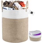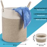 Кош за пране – ръчно изработен, декоративен тъкан памучен кош за пране от въжета – съхранявайте дрехи, книги, играчки, одеяла, възглавници – сгъваем, преносим, с дръжка – включва един малък кош – 46×38 см кафяво