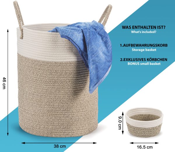 ✅ ИЗДЪРЖЛИВ И СГЪВАЕМ – Нашата кошница от памучни въжета е снабдена със здрави дръжки. За разлика от традиционните контейнери за съхранение, нашата голяма сгъваема торба може лесно да се сгъне, за да се спести място, когато не се използва.
