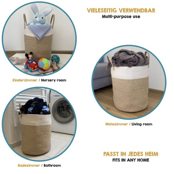 УНИВЕРСАЛЕН КОШ ЗА СЪХРАНЕНИЕ – Не само за пране! Нашият кош от въжета може да се използва и за съхранение на книги, играчки, кърпи, одеяла и възглавници. Каквото и да се сетите, можете да го приберете в коша!