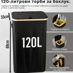 Този модел се отличава с подсилени шевове, издръжливи материали и естетичен ЧЕРЕН цвят, който се вписва лесно във всяко пространство – независимо дали става дума за модерен офис или минималистична кухня. Компактният, но просторен дизайн позволява ефективно рециклиране, без да заема много място. Освен това кошът има бамбукова рамка с желязен пръстен, към който се закрепва торбичката за отпадъци, което улеснява смяната и употребата й. Кошчето е проектирано за торбички с обем 90 литра, но можете да използвате и по-големи, до 120 литра, без никакви проблеми.