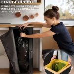 Капакът предотвратява разпространението на неприятни миризми и проникването на насекоми, като същевременно поддържа пространството свежо и чисто. Бамбуковият пръстен, заедно с железния пръстен, позволява лесно закрепване на торбичките за отпадъци.