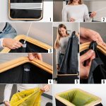 - ИНОВАТИВЕН ДИЗАЙН: Нашата патентована бамбукова рамка с метален пръстен здраво държи торбата за боклук на място и я предпазва от провисване. Капакът от плат дискретно прикрива отпадъците и помага да не се появяват миризми.