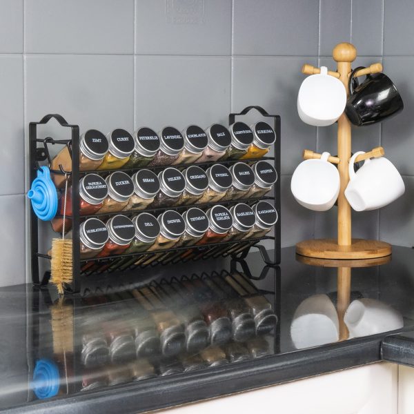 ✅ Започнете веднага – този стелаж за подправки се доставя напълно сглобен. Можете да подредите бурканите с предварително отпечатани етикети или да използвате празните етикети и маркера, за да направите свои собствени.