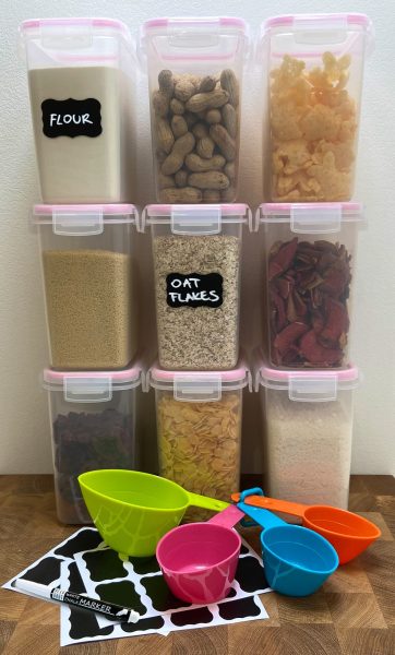 Към покупката ви включваме няколко допълнителни продукта, за да увеличим стойността и да организираме допълнително кухнята ви. Всеки комплект се предлага с етикети за многократна употреба и висококачествена писалка, за да е лесно да напишете каквото искате върху тях. Ще получите и няколко мерителни чаши, които ще ви помогнат при готвенето.