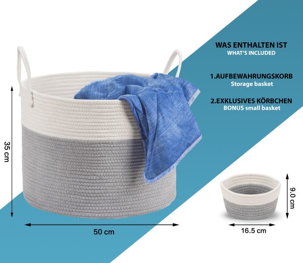 ✅ ROBUSTNA IN ZLOŽLJIVA – Naša košara iz bombažne vrvi z močnima ročajema. Za razliko od običajnih košar za shranjevanje lahko našo veliko košaro preprosto zložite in tako prihranite prostor, ko je ne uporabljate.
