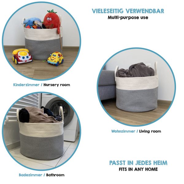 УНИВЕРСАЛНА ОРГАНИЗАЦИОННА КОШНИЦА – Не само за пране! Можете също така да съхранявате книги, играчки, кърпи, дрехи, одеяла и възглавници в нашия кош за въжета. Можете да съхранявате всичко, което искате в нашата кошница!