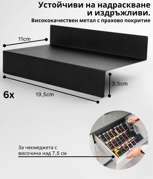 • Много място за подправките – Подправките, които искате, никога не са под ръка? Този триетажен, наклонен органайзер за чекмеджета прави организирането на подправките ви лесно.